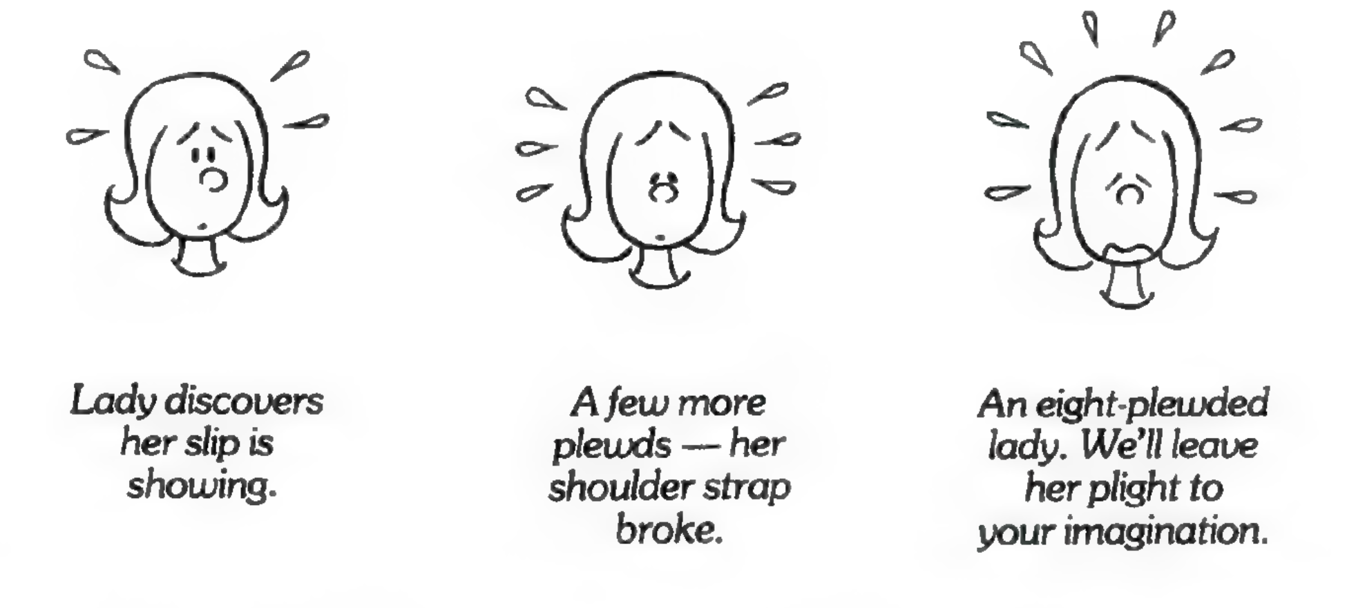 As a side note, despite citing Rice as an inspiration in the The Cartoonist article, in Private Scrapbook Walker claims to have invented all of the words he included in the Lexicon which, as has been shown, is not true. Many of the words both in the The Cartoonist article and in the Lexicon were borrowed from Rice, and in the Lexicon Walker even recreated Rice’s illustrations of plewds and squeans, complete with Rice’s captions. That said, in his book Backstage At the Strips, Walker begins by writing, “If the stories in this book are not exactly told the way they happened, it’s the way they should have happened if God had been a better gagwriter – or if I’d had a better memory.” So I guess that applies to Private Scrapbook as well.